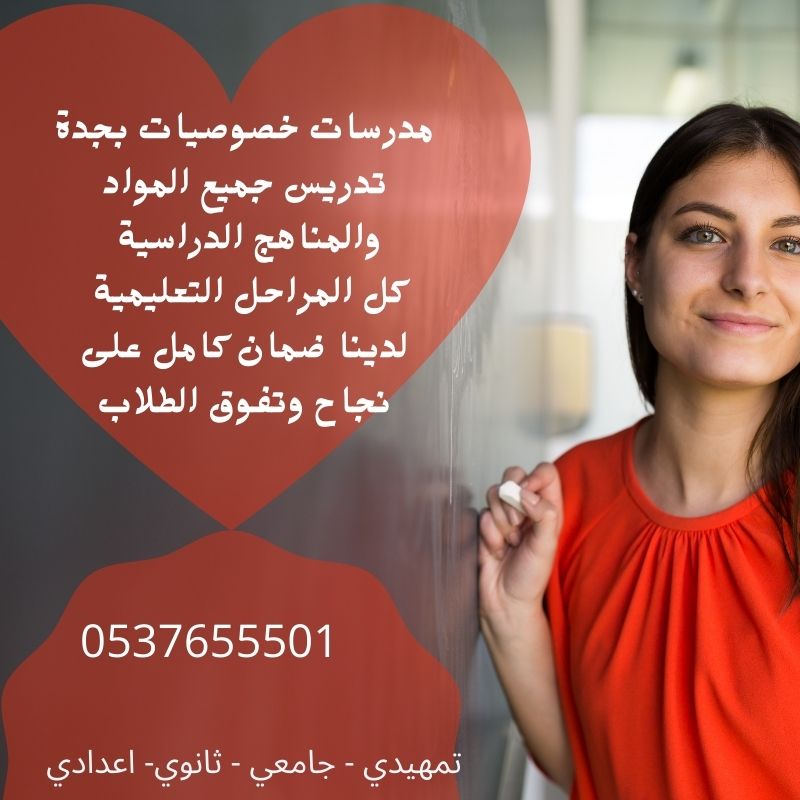 لدينا نخبة من افضل المدرسين والمدرسات ذو مهارة عالية وخبرة كبيرة في مجال التدريس بالمدارس السعودية ,خبرة تفوق أكثر من 20 عاما , لإعطاء دروس خصوصية بجدة في جميع التخصصات والمناهج الحكومية والاهلية ,ومناهج المدارس العالمية بريطاني وامريكي , بإحترافية عالية ,لجميع المستويات في جميع المراحل التعليمية (تمهيدي -ابتدائي-متوسط-ثانوي-جامعات-سنه تحضيري ) بأقل الاسعار المناسبة للجميع بخصم يصل إلي 30%, مع توفير خصم خاص للإخوان.