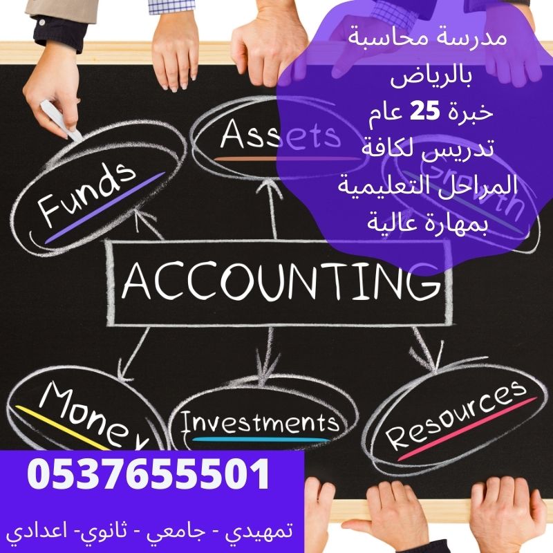 مدرسة محاسبة بالرياض , لإعطاء الدروس الخصوصية في المحاسبة لطلاب وطالبات ,المعاهد التقنية, الجامعات, طلاب السنه التحضيري, حاصلة على شهادة جامعة بدرجة ماجستير, خبرة كبيرة في مجال التعليم لا تقل عن 20 عاما , خصم كبير يصل إلى 30% , وخصم خاص للإخوان في نفس البيت.