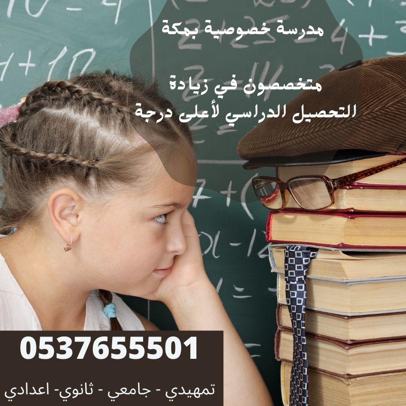 افضل مدرسة خصوصية بمكة حاصلة على شهادة جامعية بدرجة ماجستير , خبرة كبيرة في مجال التعليم لا تقل عن 20 عاما بالمجال, دبلومة طرق تدريس حديثة ومعتمدة , حاصلة على دورات صعوبات تعلم ,وبطء تعلم,تقوم بتأسيس ومتابعة جميع الطلاب والطالبات في جميع المستويات لجميع المراحل التعليمية(تمهيدي-ابتدائي -متوسط-ثانوي-جامعات-سنه تحضيري),بكفاءة عالية ومهنية.