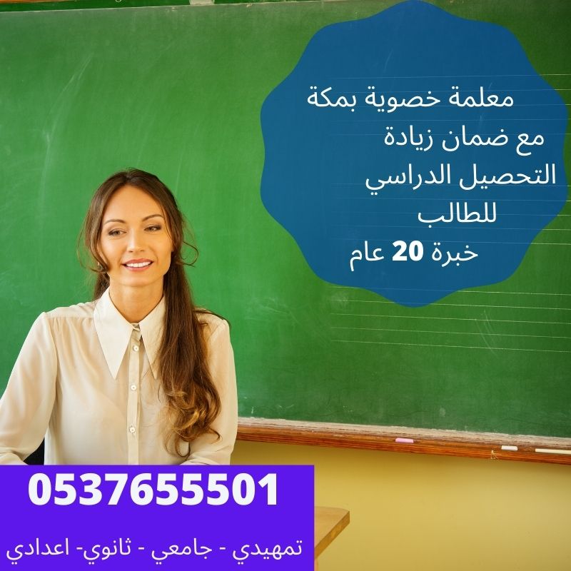 معلمة خصوصية بمكة تقوم بالتأسيس والمتابعة لجميع الطلاب في جميع المراحل التعليمية(تمهيدي-ابتدائي -متوسط-ثانوي-جامعات-سنه تحضيري) بكفاءة عالية ,لشح وتدريس جميع المواد الدراسية في جميع المناهج والتخصصات(الحكومي-الاهلي-الانترناشونال بريطاني,أمريكي) بمهنية واقل الاسعار.